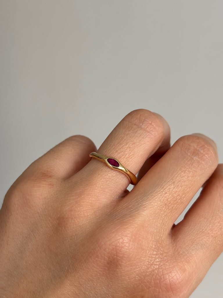 Fluid Ring with Stone No. 5 - Marquise Ruby (0.18 ct), Solid 14k Gold | ONE-OF-A-KIND