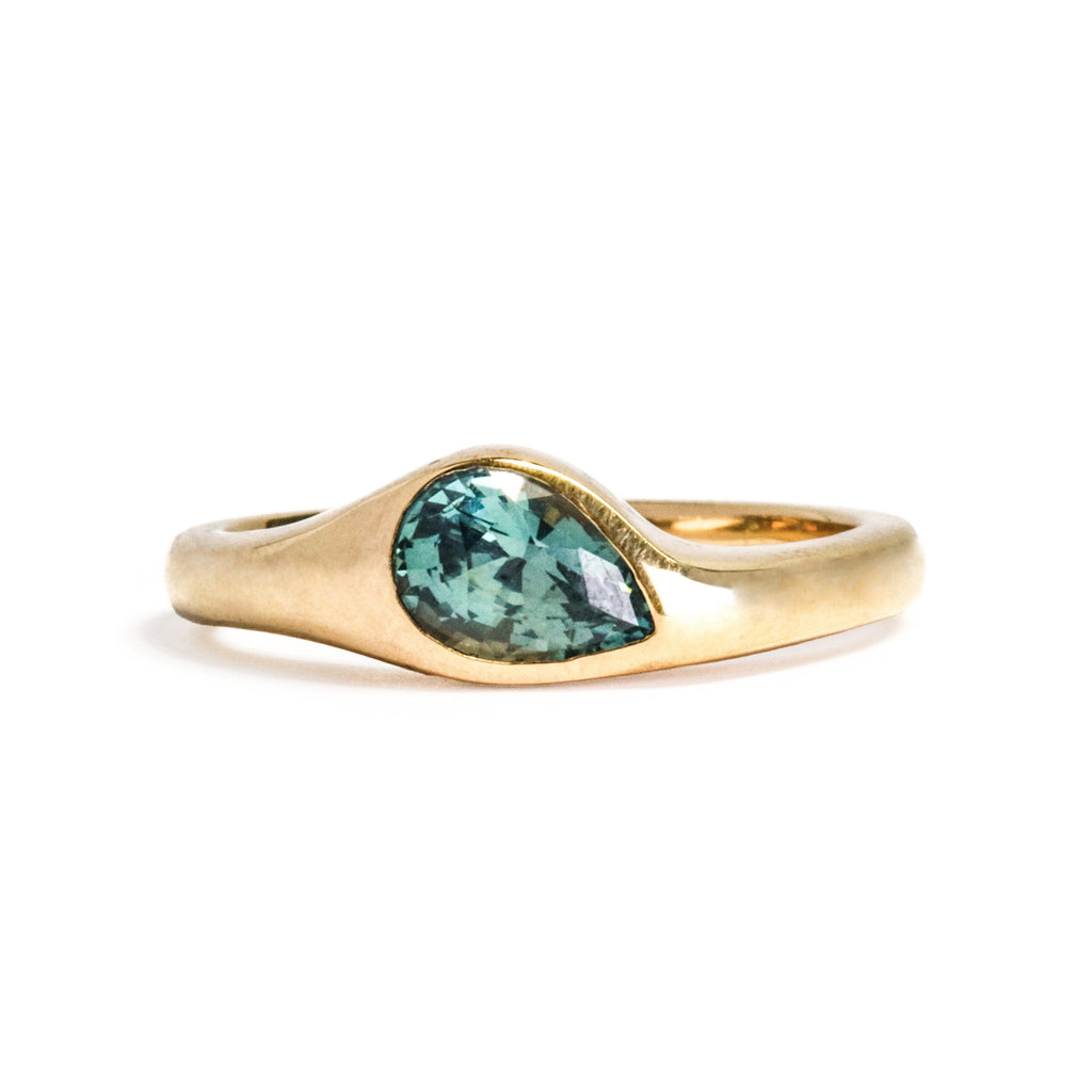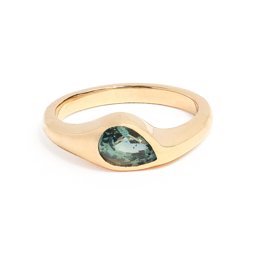Tilted Stone Ring No. 2 - Pear Teal Sapphire (1.02 ct Unheated), Solid 14k Gold | ONE-OF-A-KIND